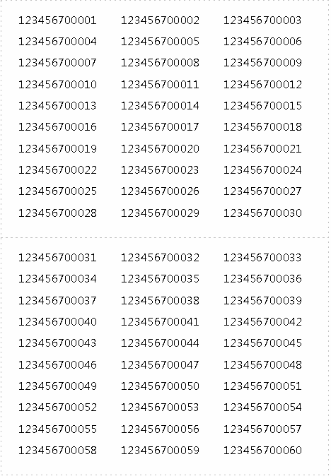 假設(shè)我們要在尺寸為B5的紙張中打印2行1列的一系列不干膠標(biāo)簽,每個(gè)小標(biāo)簽里又包含30個(gè)有序數(shù)字,且相互連接;在一張紙結(jié)束后,第二張紙的第一位數(shù)字也要對(duì)接上第一張紙頁(yè)末的數(shù)字。應(yīng)該進(jìn)行如下操作: