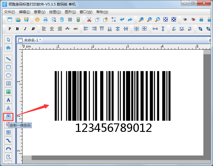 1、打開(kāi)中瑯條碼標(biāo)簽打印軟件,使用“繪制一維條碼”工具在畫(huà)布中繪制一個(gè)條碼,選擇需要的條碼類(lèi)型以及尺寸大小。